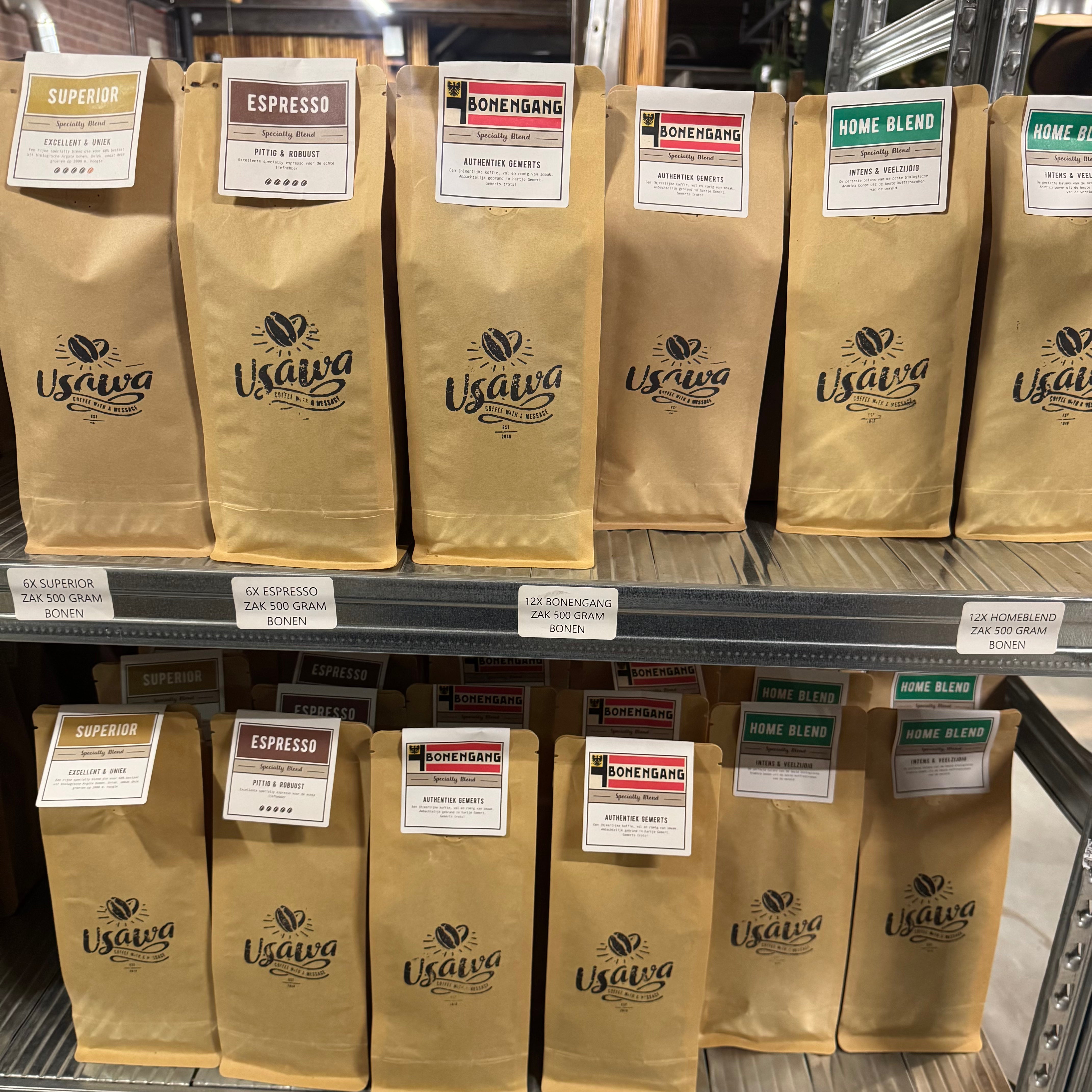 Onze koffiebonen verpakken we in zakken waarmee de versheid en smaak zo lang als mogelijk gegarandeerd is. De zakken zijn voorzien van een ventiel om het koolzuurgas dat vrijkomt bij vers gebrande koffiebonen af te voeren en te voorkomen dat er zuurstof in de zak komt. Deze klep zorgt ervoor dat de koffie vers en smaakvol blijft. We streven naar het gebruik van duurzame verpakkingsmaterialen die volledig recyclebaar zijn. Onze zakken zijn gemaakt van gelamineerd kraftpapier dat als oud papier kan worden gerecycled.